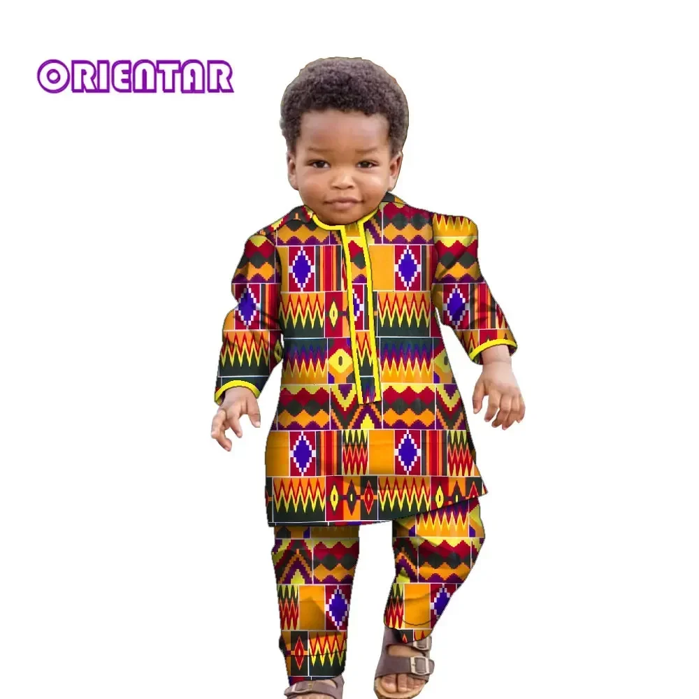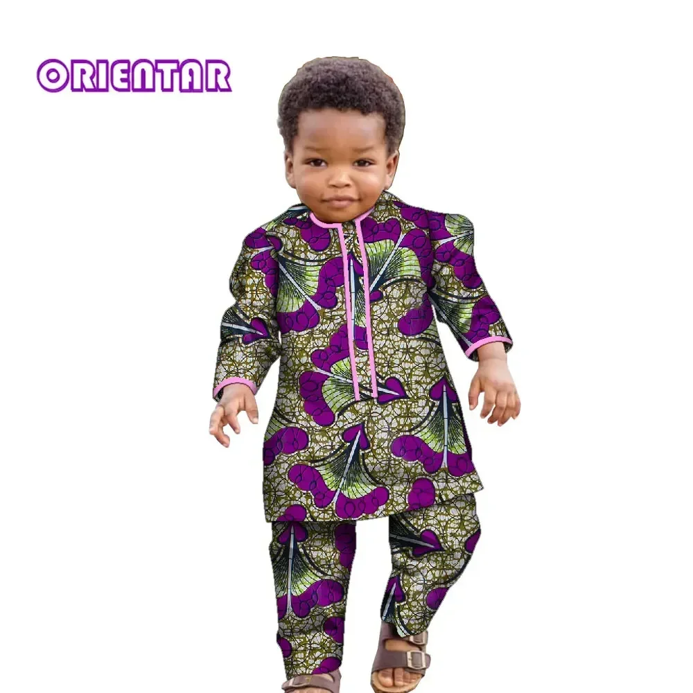 Buy Ankara Fashion Floral Print Boy Suit 2 Pcs Set Long Sleeve Shirt and Pant African Clothes for Boy Dashiki Boy Outfit