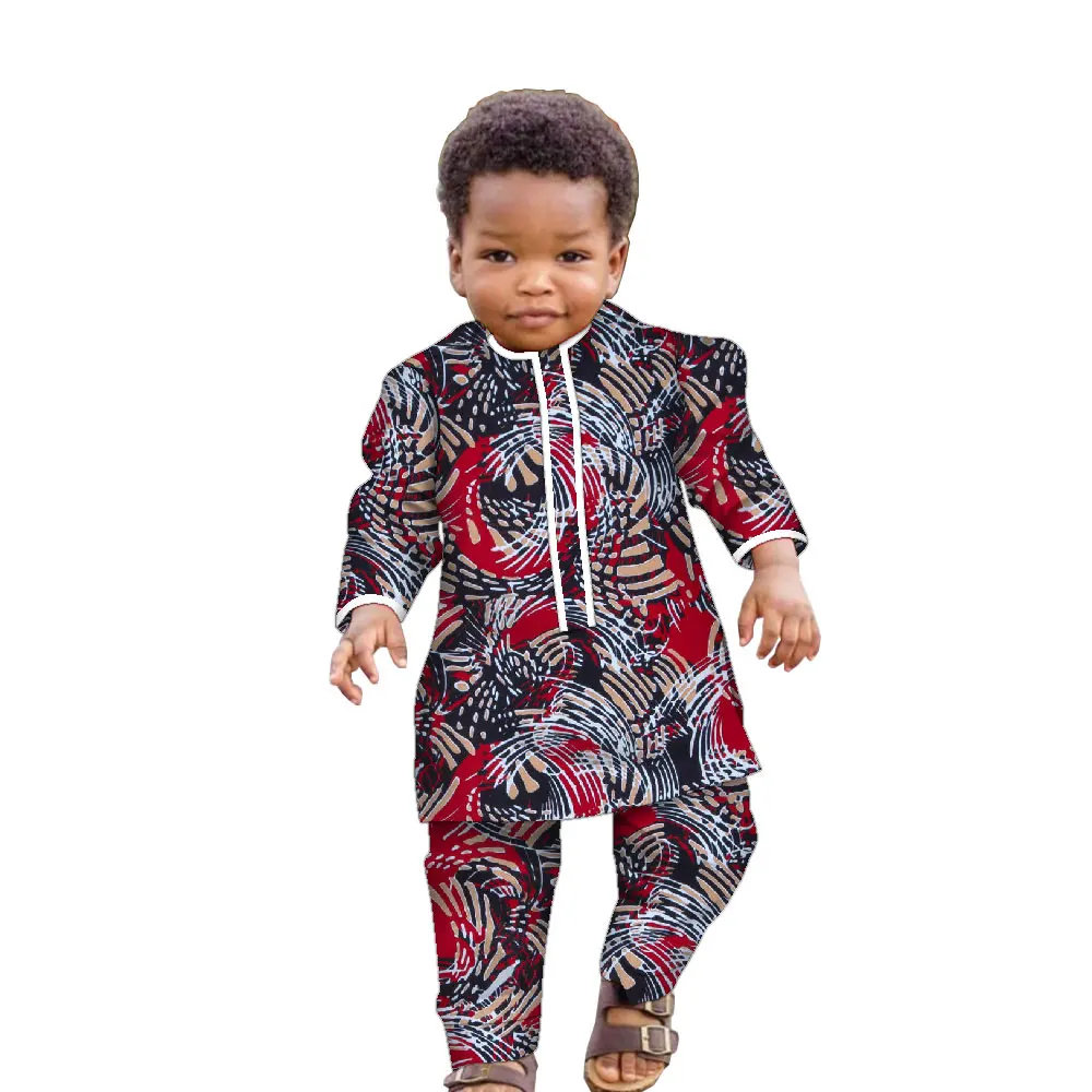 Ankara Fashion Floral Print Boy Suit 2 Pcs Set Long Sleeve Shirt and Pant African Clothes for Boy Dashiki Boy Outfit