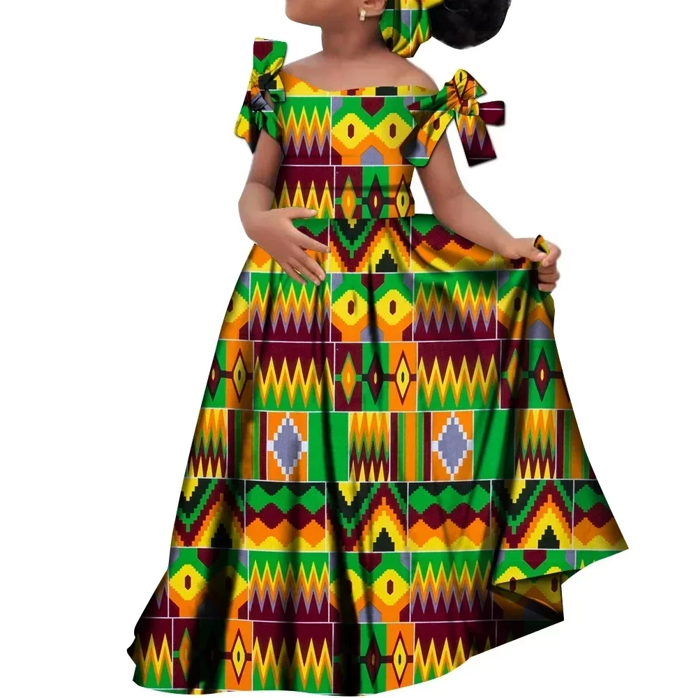 Kids Girls African Dashiki Dress Printted Vestidos Kids Cute Party Dresses African Clothing Long Dresses with Headscarf